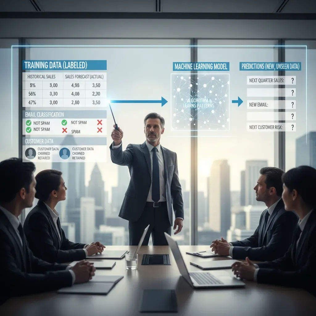 When I talk with executive teams about machine learning for business, I avoid model jargon and focus on what each approach does for the company. An algorithm is simply a method for finding patterns in data. A model is the output of that method—something we can use to predict, rank, or group items. The key executive question is: Which model type fits the decision we need to make?